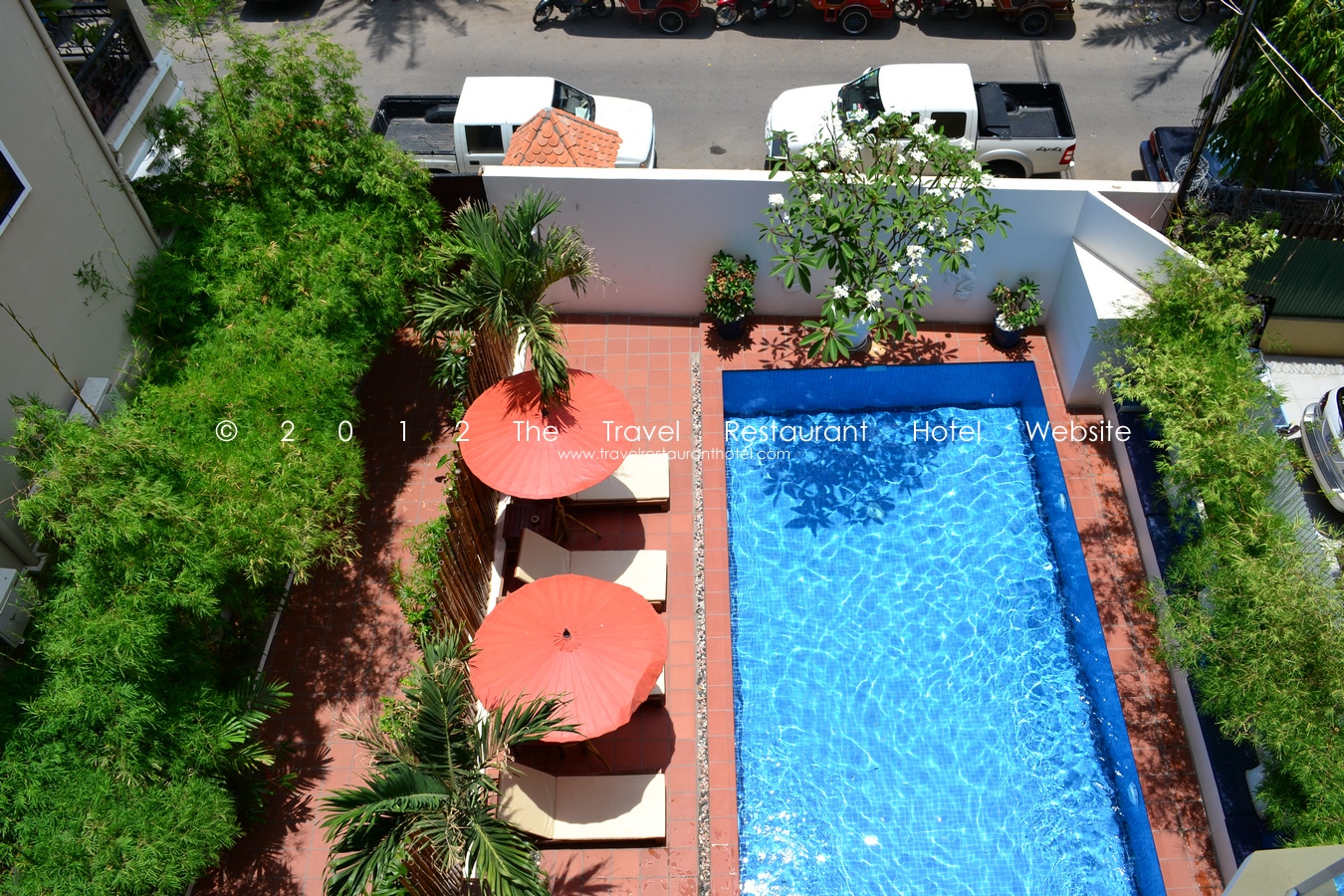 이 작은 보석 같은 호텔은 프놈펜 시의 정 중앙에 위치해 있습니다. 이 호텔은 독립기념탑으로부터 걸어서 5분 걸리고, 프린스워터하우스 쿠퍼의 프놈펜 사무실과 같은 거리에 있습니다. 호텔이 시내 중앙에 위치했기 때문에, 호텔에서 시티센터(북쪽의 왓프놈에서부터 남부의 프사 뚜얼 톰 뿡이라는 러시안 마켓까지라고 생각됩니다.) 내의 어디로 이동하더라도 툭툭으로는 2달러를 넘지 않고, 오토바이로는 1달러를 넘지 않습니다.