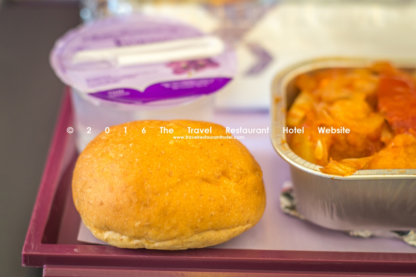 We were given an option of chicken or vegetarian and of course I had to go with the chicken. There was an array of food served on a burgundy tray. Apart from the pack of water, we were later also served either tea, coffee or juice. Being an avid coffee drinker, I was ecstatic over the variety of complimentary beverages.