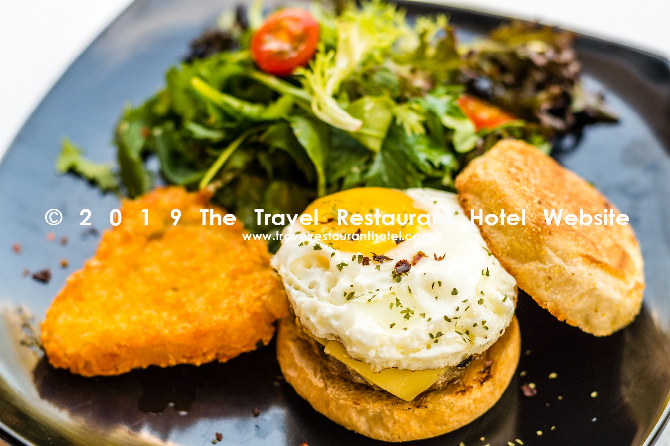 Handmade pork sausage patty, egg, cheddar, Japanese wheat flour and Taiwan longan blossom honey muffin, with mesclun and crispy chunky hash brown.