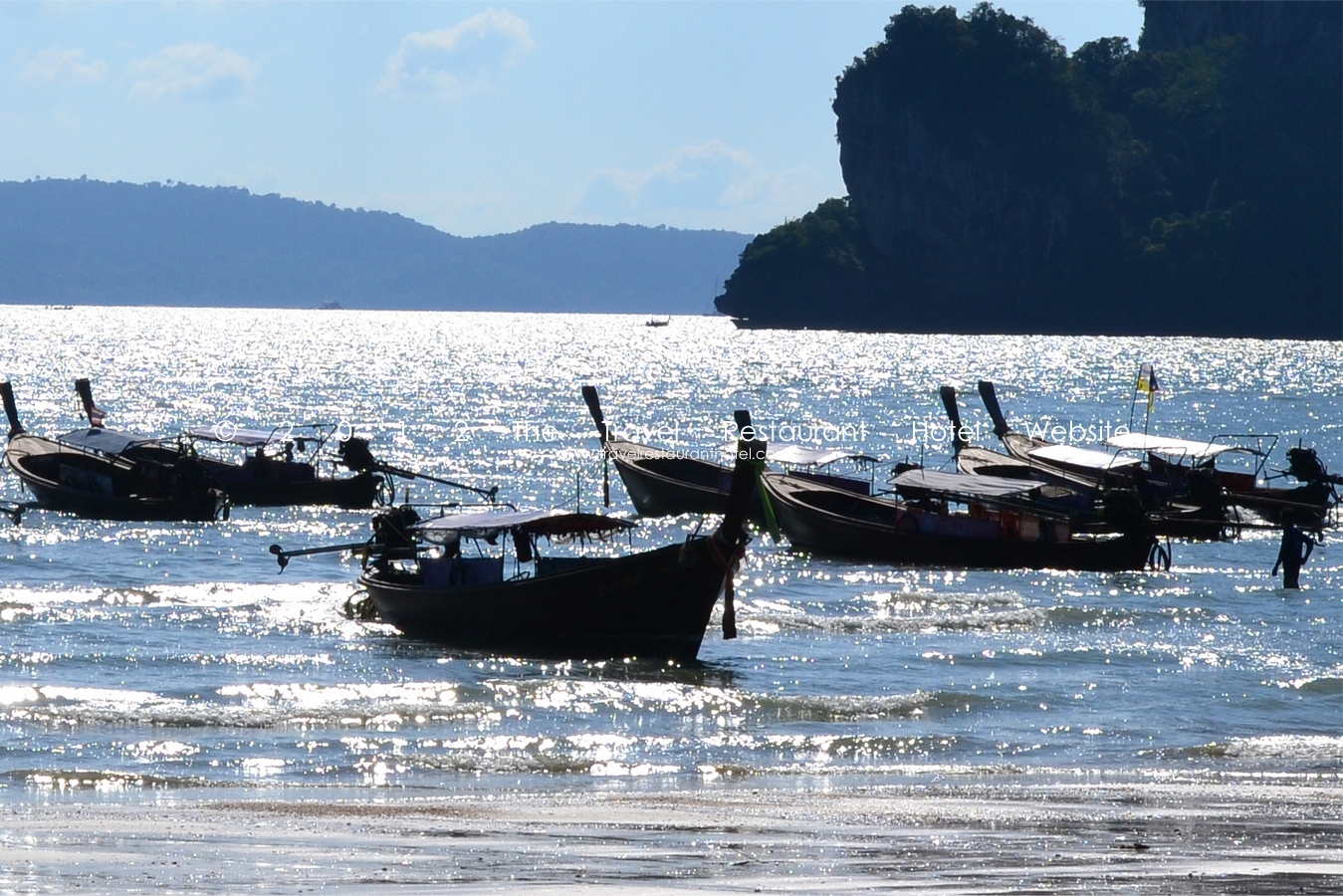 Vous pouvez prendre un bateau à longue queue de la plage d’Ao Nang jusqu’à Railay. Il y a deux guichets (Aux deux extrémités de la plage) contrôlés par deux entreprises différentes. J’ai seulement visité l’Ouest de Railay (La partie de la péninsule censée être la plus jolie des deux) mais il y a surement des bateaux à direction de l’Est de Railay et d’autres endroits. Un aller-simple en direction de Railay Ouest coûte 100B. Le ticket retour coûte 200B.