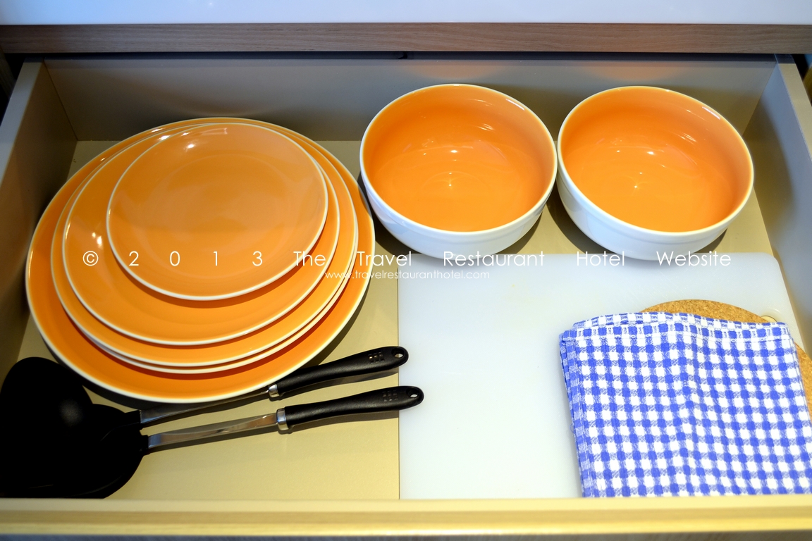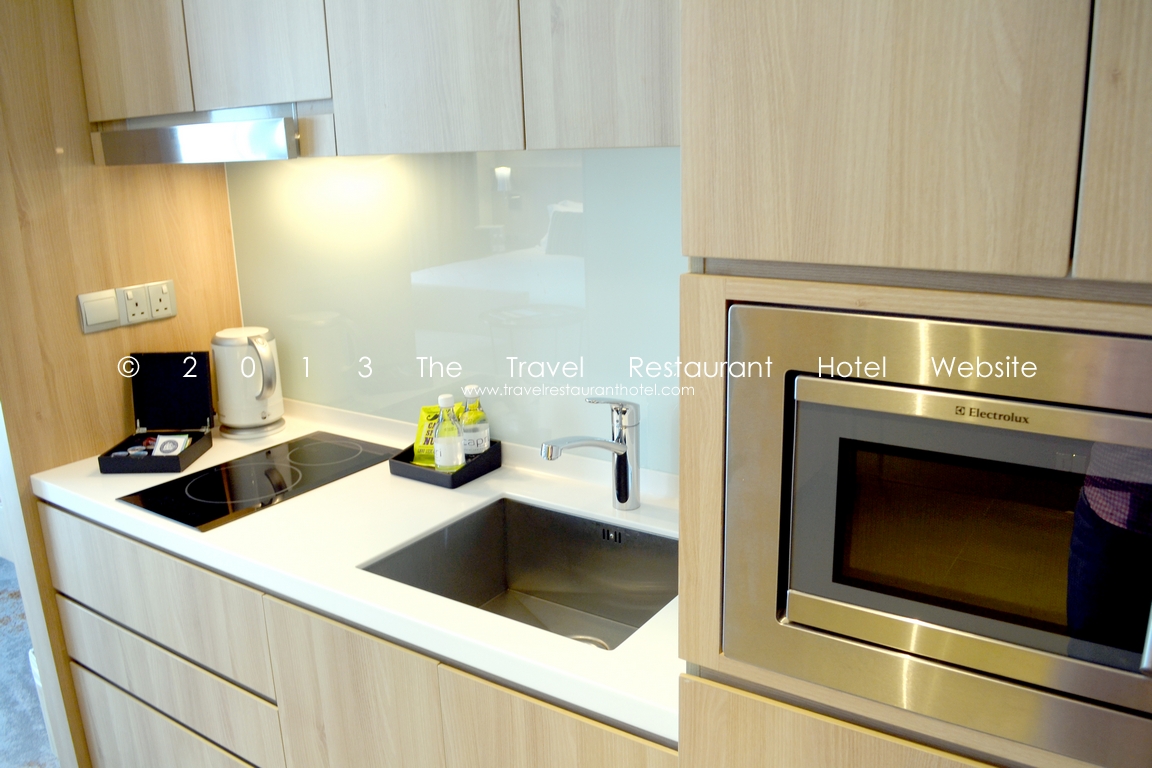 You are able to save some money if you stay here thanks to the kitchenette. Each room, regardless of the tier, comes with a kitchenette, complete with a microwave, induction kitchen hob, deep sink, Luzerne tableware, spatula, ladle, frying pan (with lid), saucepan (with lid), can opener, wine opener, steel cutlery. In other words, you can buy groceries from the supermarket in the connecting mall and then whip up a simple meal in your own room.