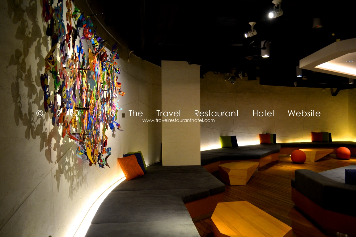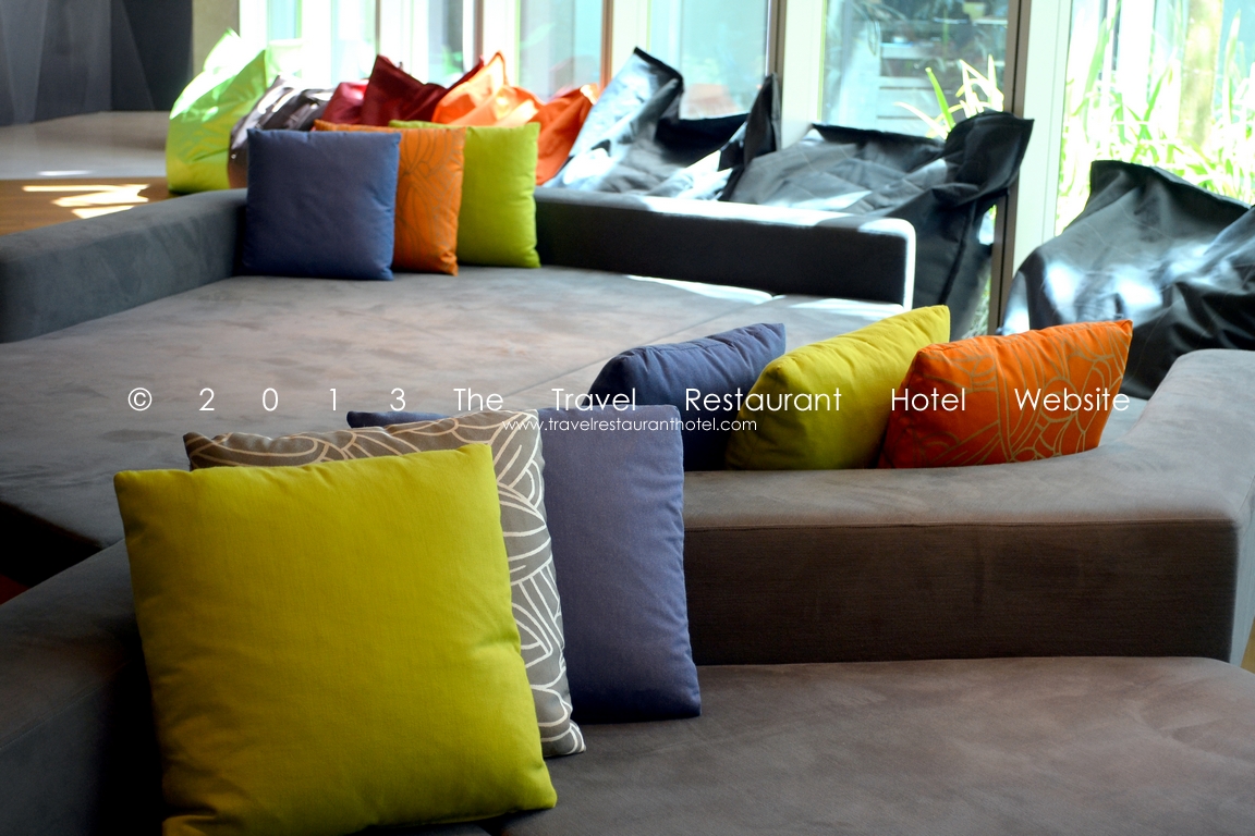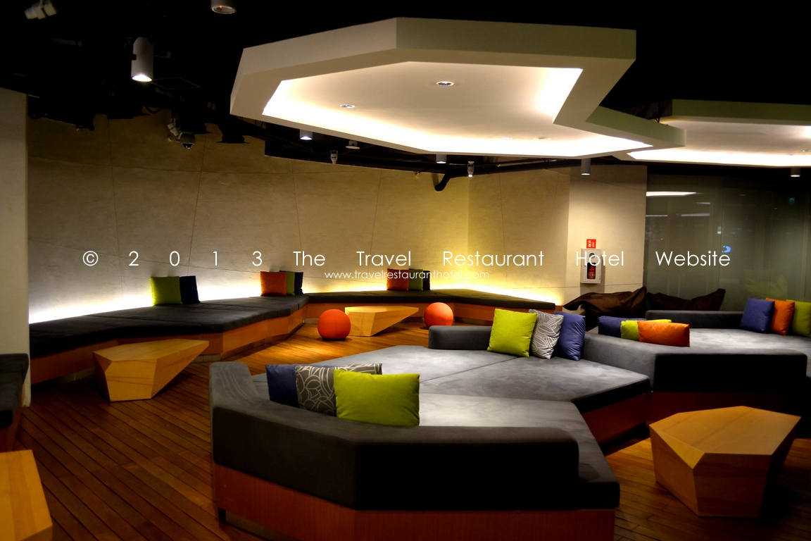 The ground floor showcases “seamless” design. Areas “flow” seamlessly into one another—the reception flows into the business corner, which flows into a lounge area, complete with bean bags and many cushions. The idea is that patrons/ guests can order a coffee/ drink and “curl” up on a bean bag/ funky cushioned bench. The lounge flows into the bar, which flows into the restaurant, which flows into the deli.