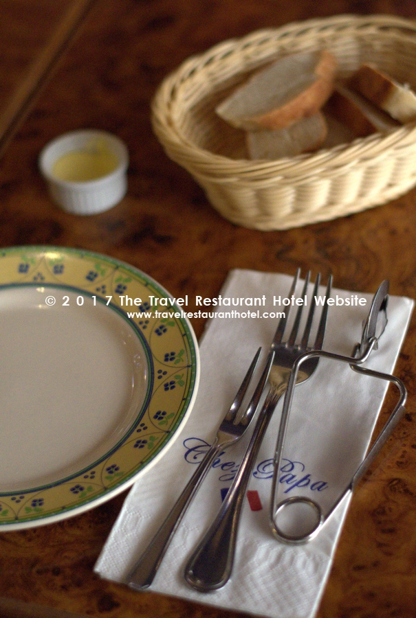 Didorongi minat yang kuat, Chez Papa menyiapkan hidangan enak, tapi mudah dan biasa. Menu mereka yang berpatutan terdiri daripada pembuka selera, salad dan sup serta berbagai pilihan pasta, daging, ayam dan makanan laut. Terdapat juga pelbagai jenis pencuci mulut dan keju. Bistro tersebut mula menghidangkan makan malam daripada 6.00 petang hingga 10.30 malam kecuali pada hari Ahad apabila restoran tersebut ditutup.