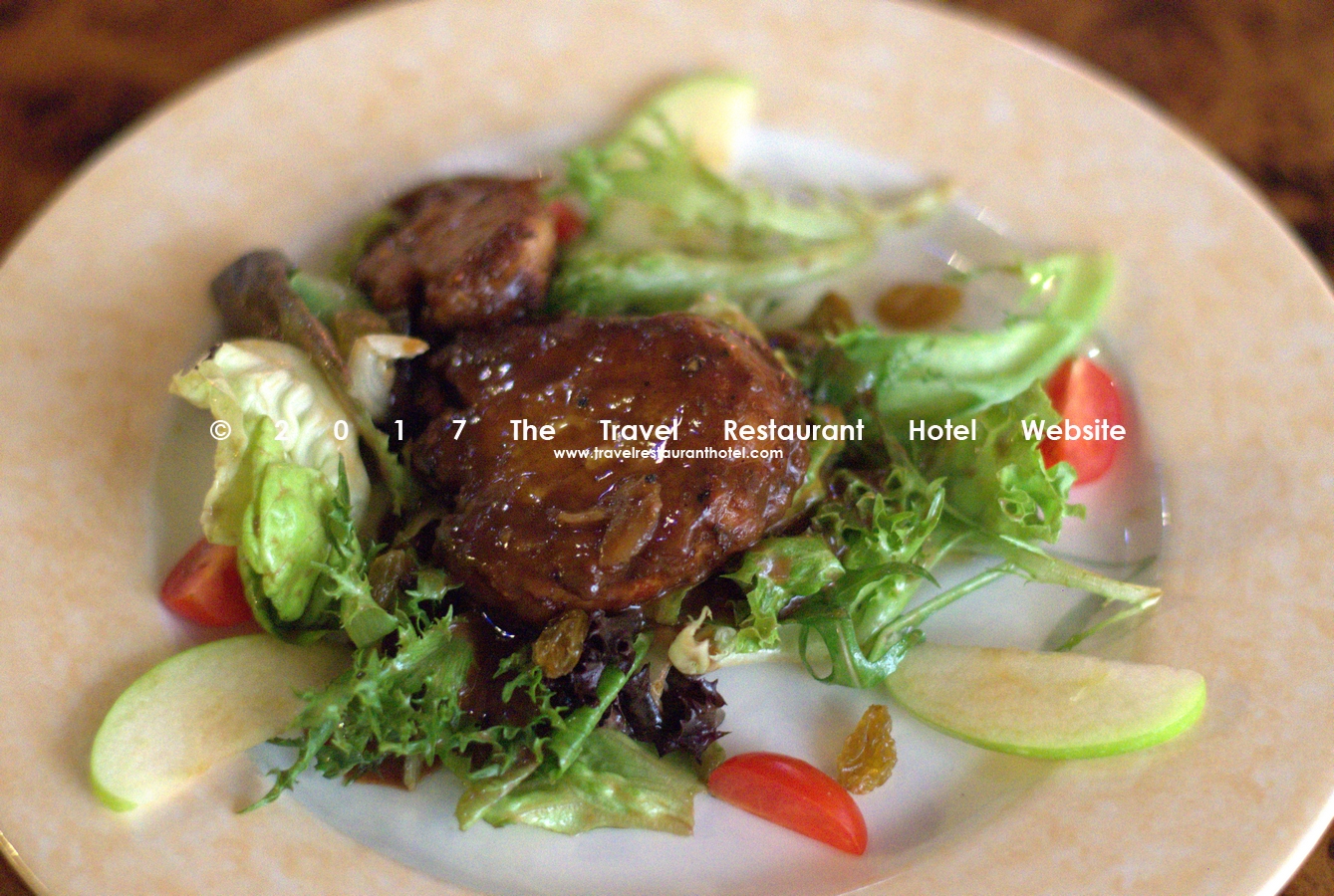 The signature starter of the restaurant is the french onion soup or Soupe à L’oignon. It is a slow-cook caramelised onion dish usually served with crouton. However, it also could also be paired with french bread. Chez Papa’s signature main dish, Pan-Fried Foie Gras, is served in a relatively big portion. The port of wine reduction adds to the sweetness of the dish. The result is a rich, buttery and delicate taste.