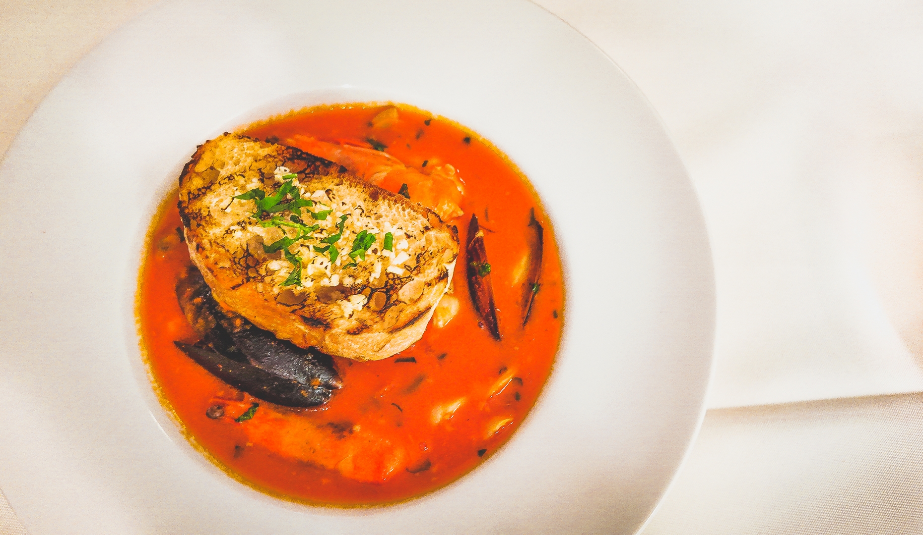 Mixed seafood soup in light tomato base