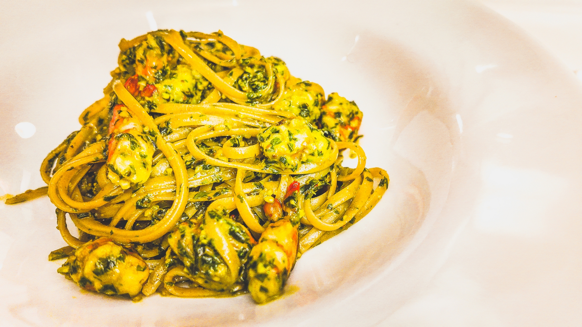 Linguine al pesto e gamberi RM58
