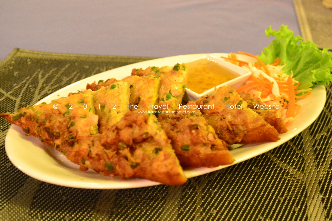 Paistettua leipää jauhetulla sianlihalla. Tämä on niin maukasta ja sopii erinomaisesti alkupalaksi. Olen nähnyt muissa ravintoloissa tätä tarjottavan jauhetulla kananlihalla ja jauhetulla katkaravulla, tosin täällä näitä vaihtoehtoja ei ole saatavilla.