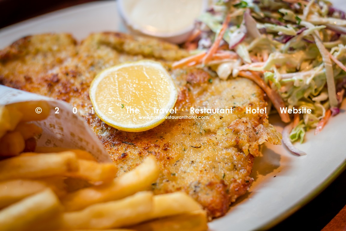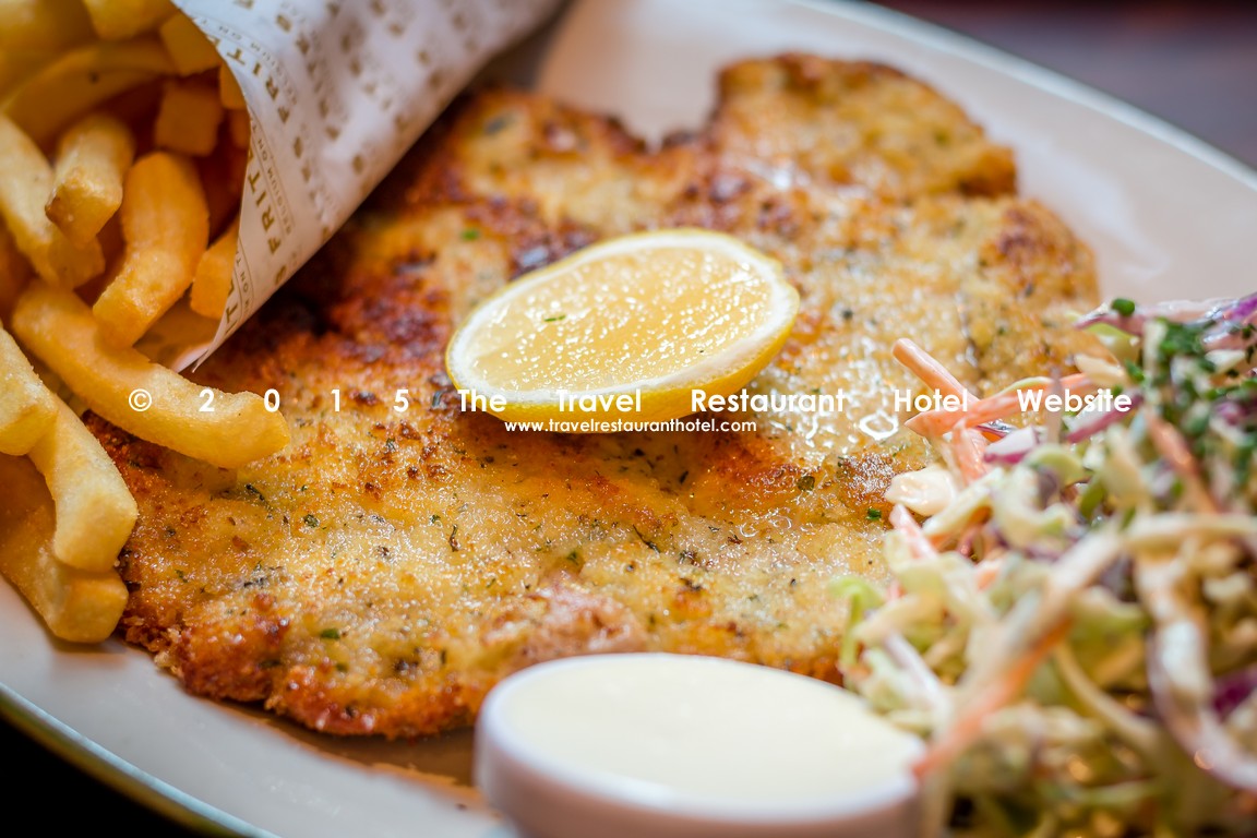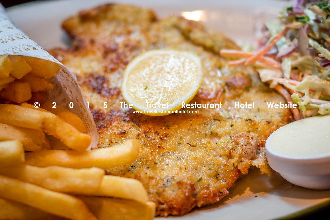 這間店的炸肉排和薯條也是我吃過最好吃的炸肉排。上好的豬排裹著帕爾馬干酪煎至兩面金黃,輔以炸薯條和脆蘋果色拉作為配菜。豬排表面酥脆可口,內裡多汁,是我所嚐過的最厚實的炸肉排。