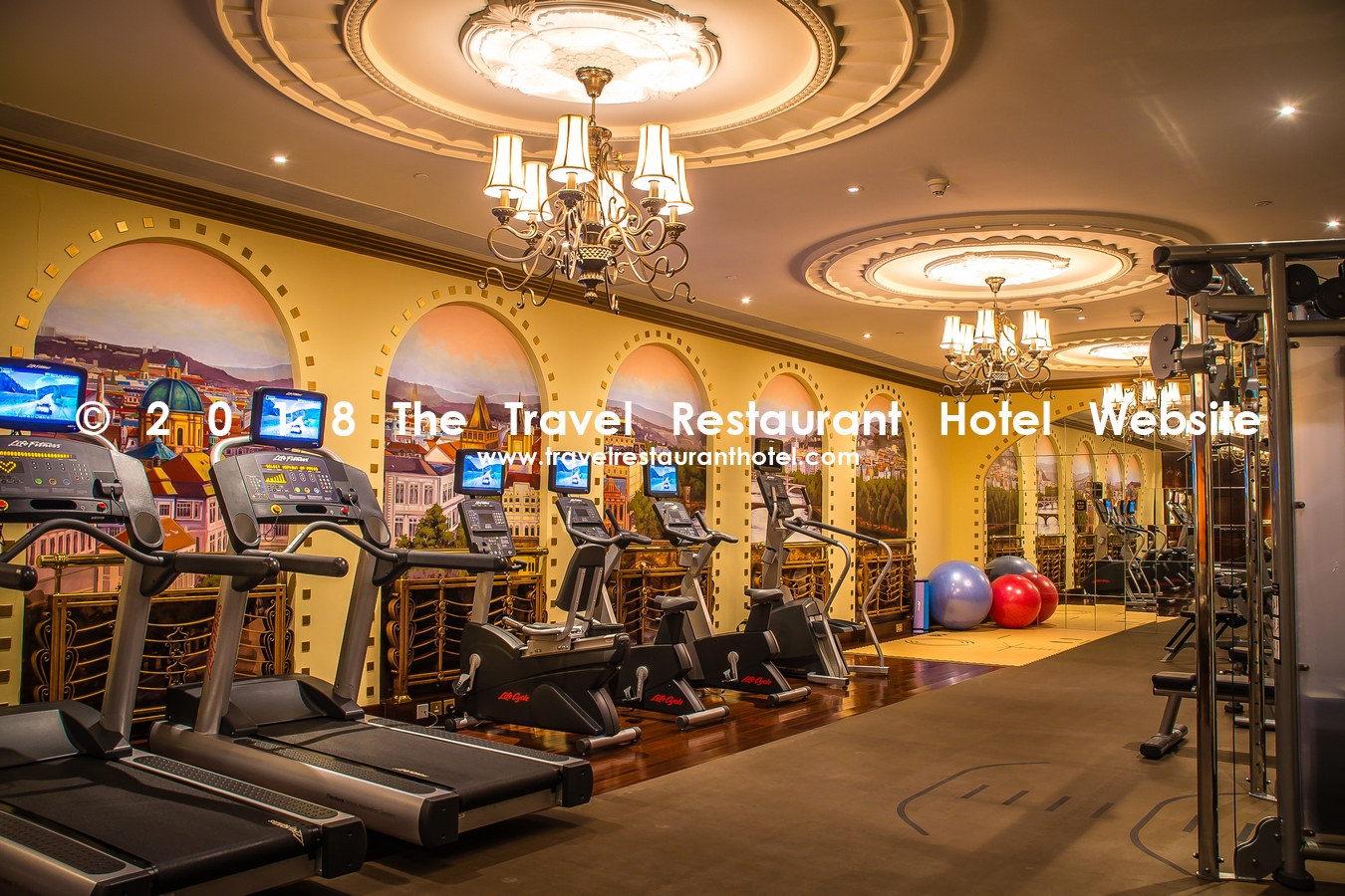 The small gym offers a unique experience. The painted wall murals offer a view of Prague. It is definitely interesting to work out in such an artsy environment.