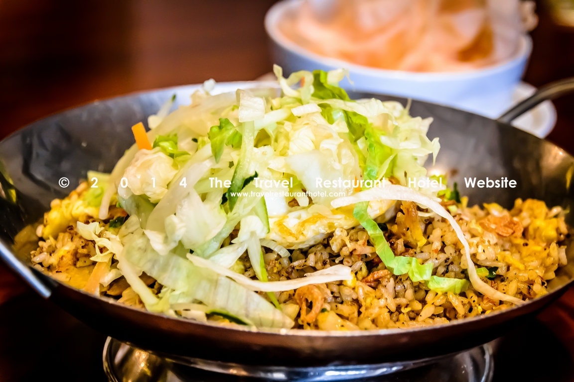 The fresh fragrance of the chopped lettuce contrasts with the fried rice which has a hint of spiciness. The fried rice just the right hint of char-grilled flavor. With the accompanying meat, this is filling and satisfying.