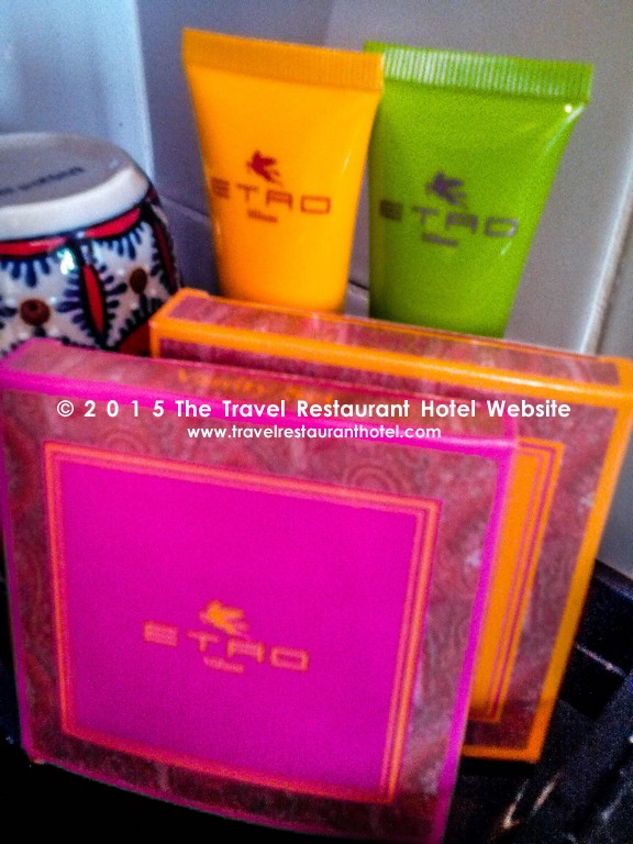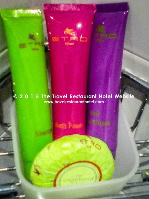 The room also provides Italian brand Etro toiletries. While the musk fragrance of the toiletries does not particularly appeal t me, the tubes are quite generous in quantity (40 ml) and unbeatable in their fashionable packaging.