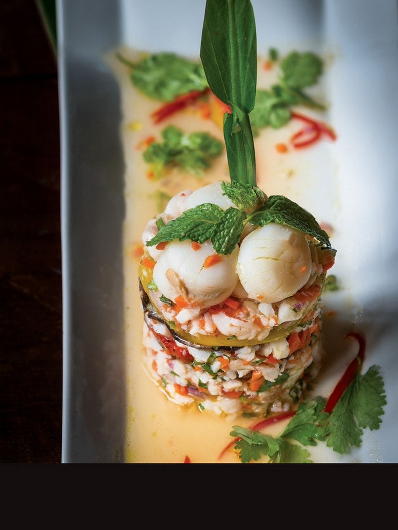 入席后浏览着当晚的菜单,您会发现每一道菜都是正宗皇家泰国美食的代表,使用由泰国直送的最高品质的原料精心烹调。在每一位蓝象餐厅大厨的巧夺天工下,这些食材根据代代相传的食谱,或是加入现代化调整的传统风味细心烹煮。其结果是艺术与食物的和谐结合并加上视觉诱人的呈现方式。每道菜的细节和味道都是无可挑剔的。