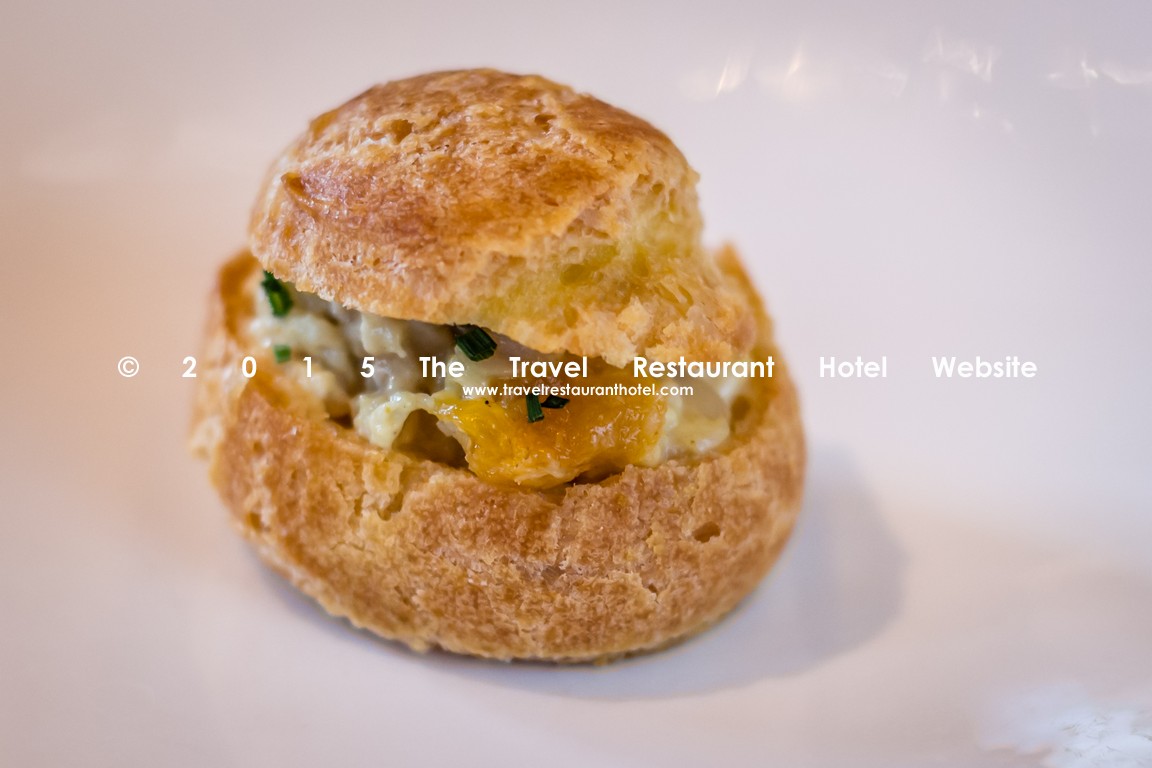 Choux bun filled with coronation chicken