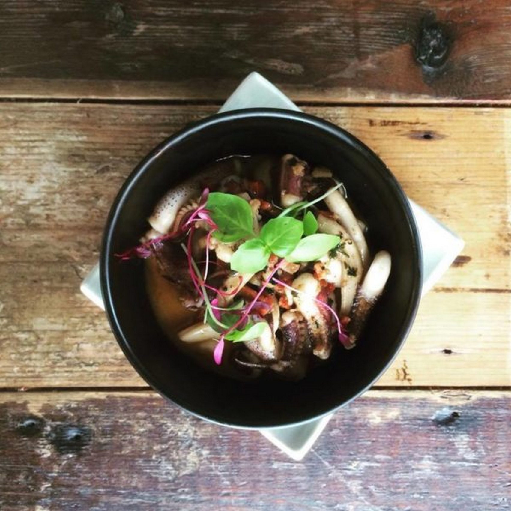 The perfect item off the menu to start with would be a generous variety of “tapas”. Along with a bowl topped with deep fried potatoes sliced into thin, crispy strands, the well-seasoned beef tartar that comes with it gives your taste buds a spin. And unlike the usual calamari most restaurants serve, Marcel opts to stir-fry them with chorizo and pastis, giving them a light crunch.