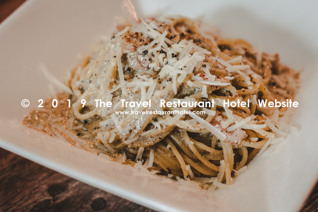 Spaghetti carbonara with truffle and olive sauce and smoked bacon