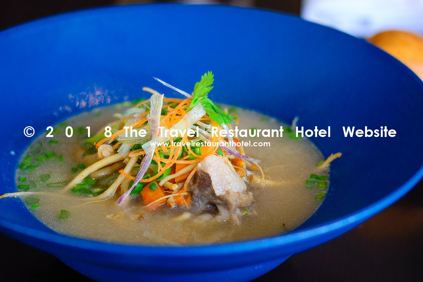Herb boiled oxtail with ginseng served with mixed vegetables and bun.