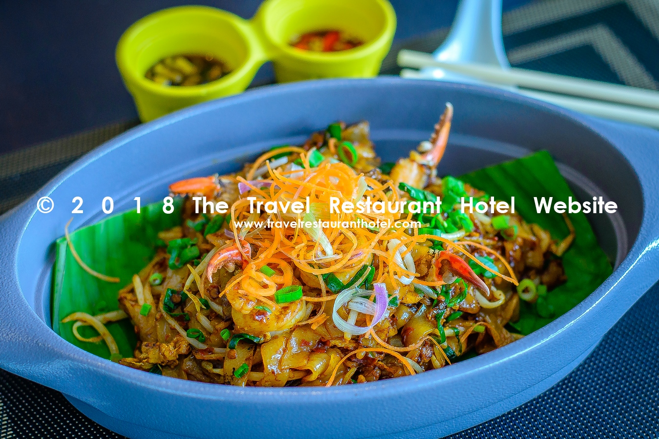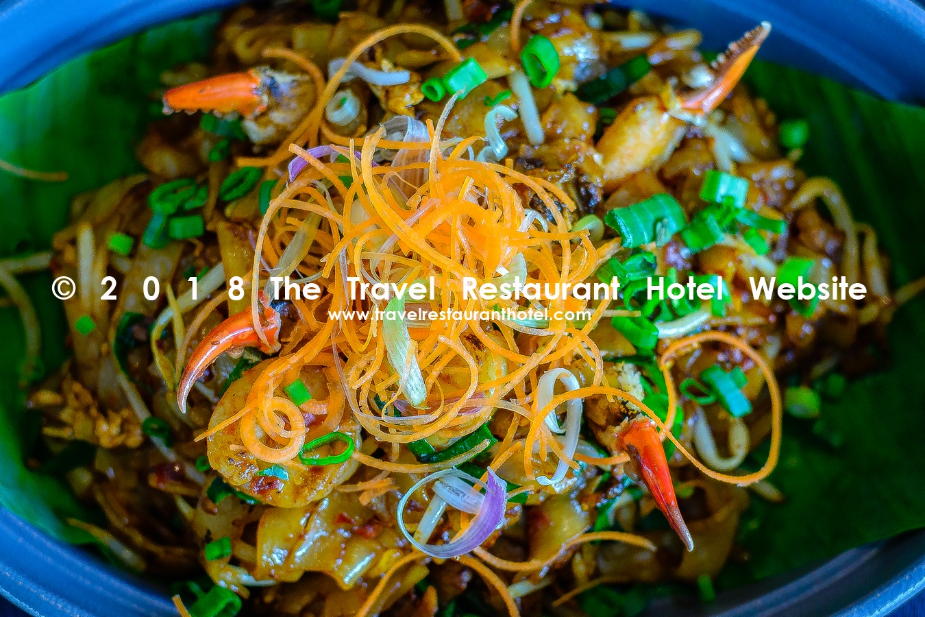 Fried ribbon rice noodles with prawns, crab claw, cockles, chives and bean sprouts