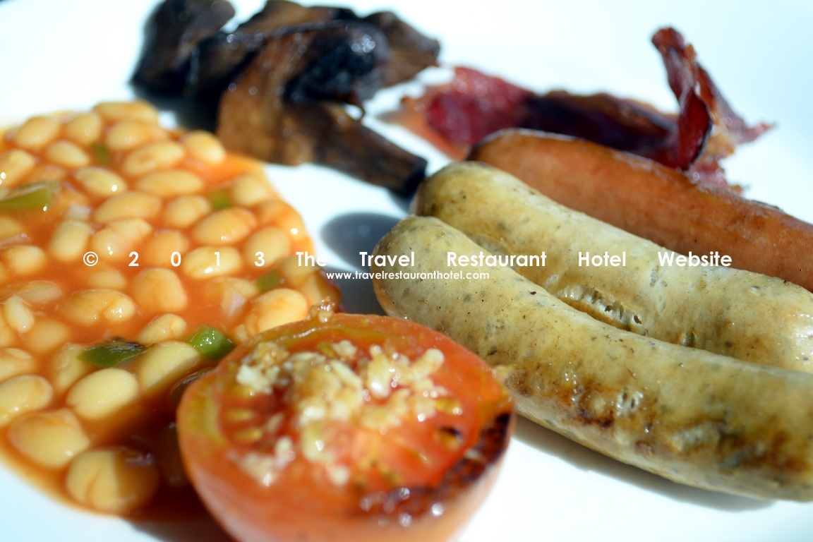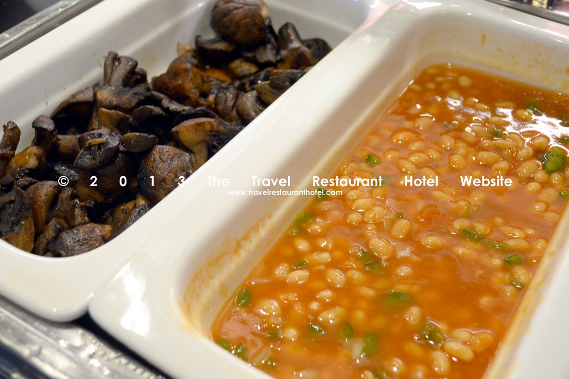 The breakfast buffet consists of the usual Western fare (sausages, baked beans, mushrooms),
