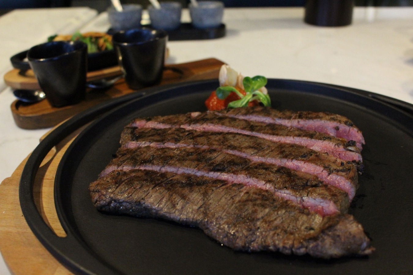 The restaurant’s speciality grilled dishes include their spectacular meat grilled on a unique blend of Japanese Binchotan white charcoal and U.S. Hickory wood. This cooking method is executed to achieve the best temperature and finest flavour.
