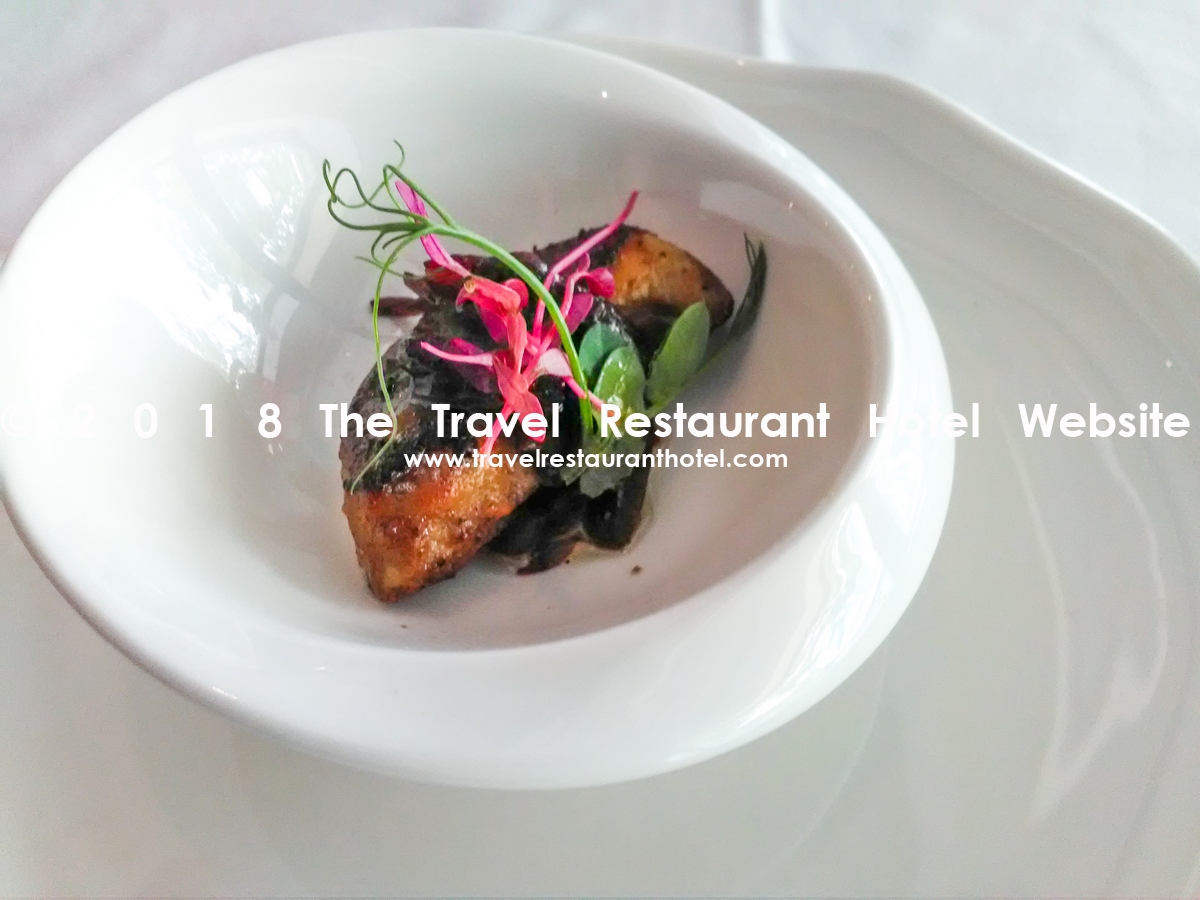Pan fried duck liver with rhubarb mousse and caramelised marmalade of kumquats and sweet orange.