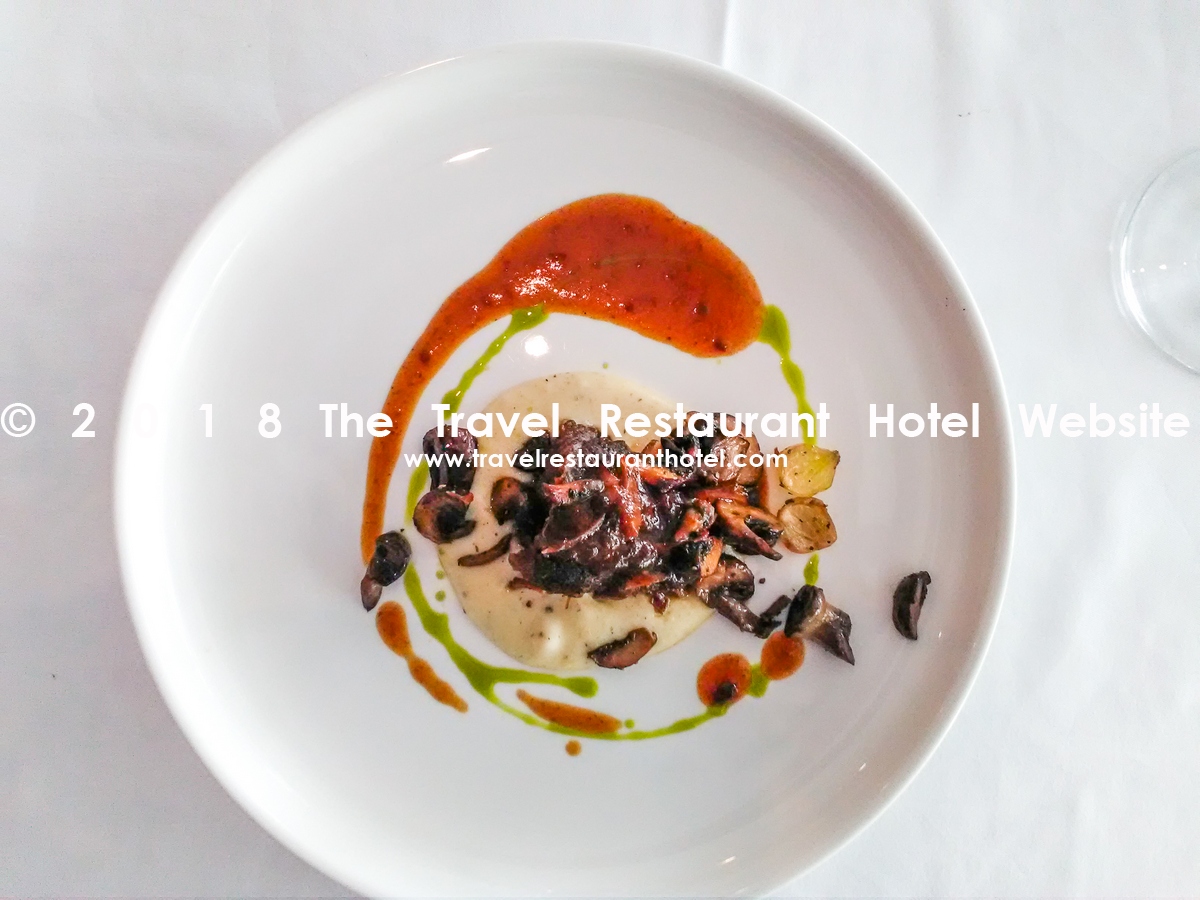 Beef cheek stewed in red wine served on truffle mash, sliver onion and sauteed velvety field mushroom.