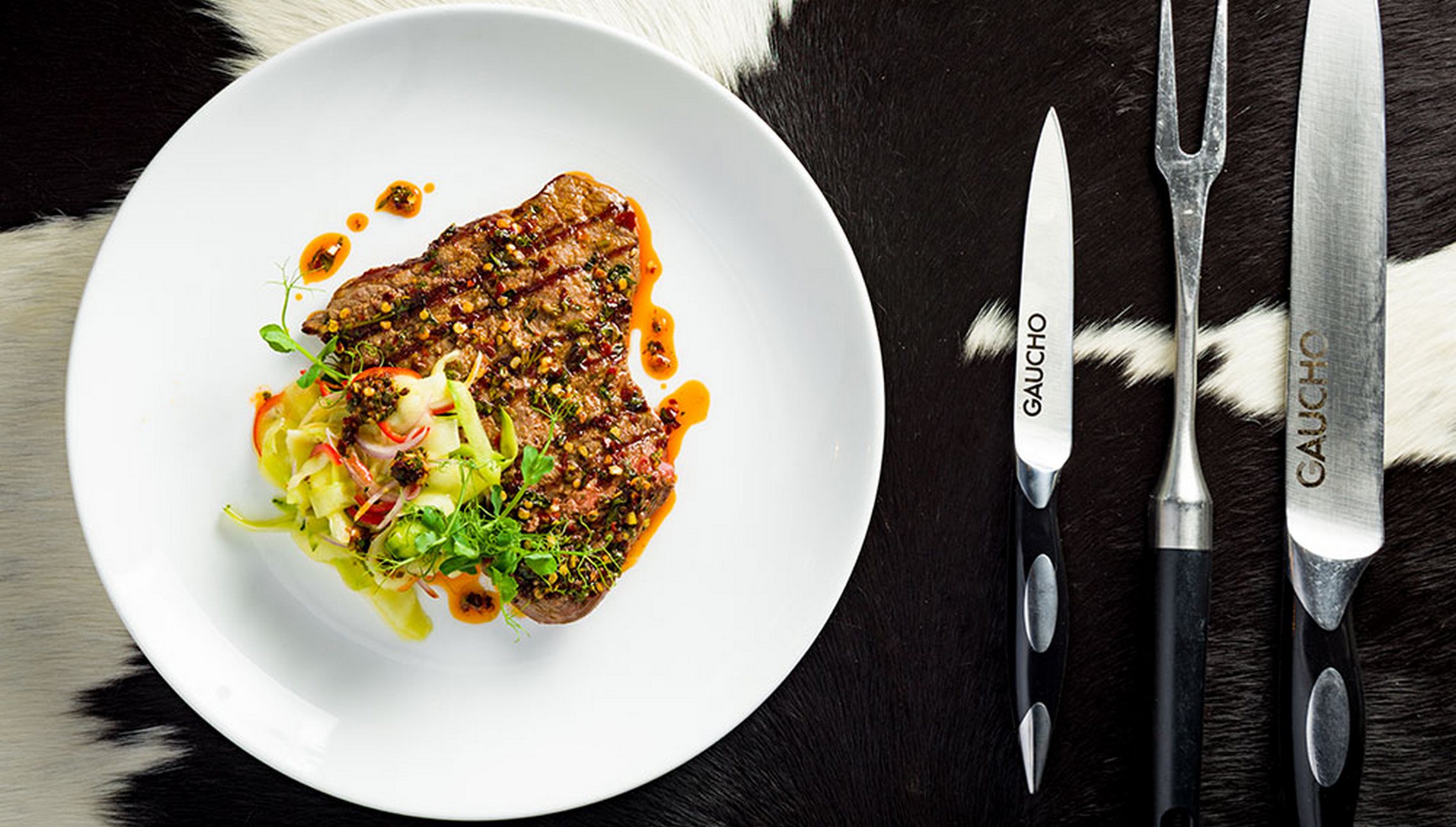 Flown from the Argentinian lowlands Pampas and onto your plate, an 80-year-old Argentine recipe seasoned with time – a plate of sumptuous steak lightly brushed with infused garlic and lemon corn oil, sprinkled with Maldon sea salt, and flipped once on an open-fire grill.