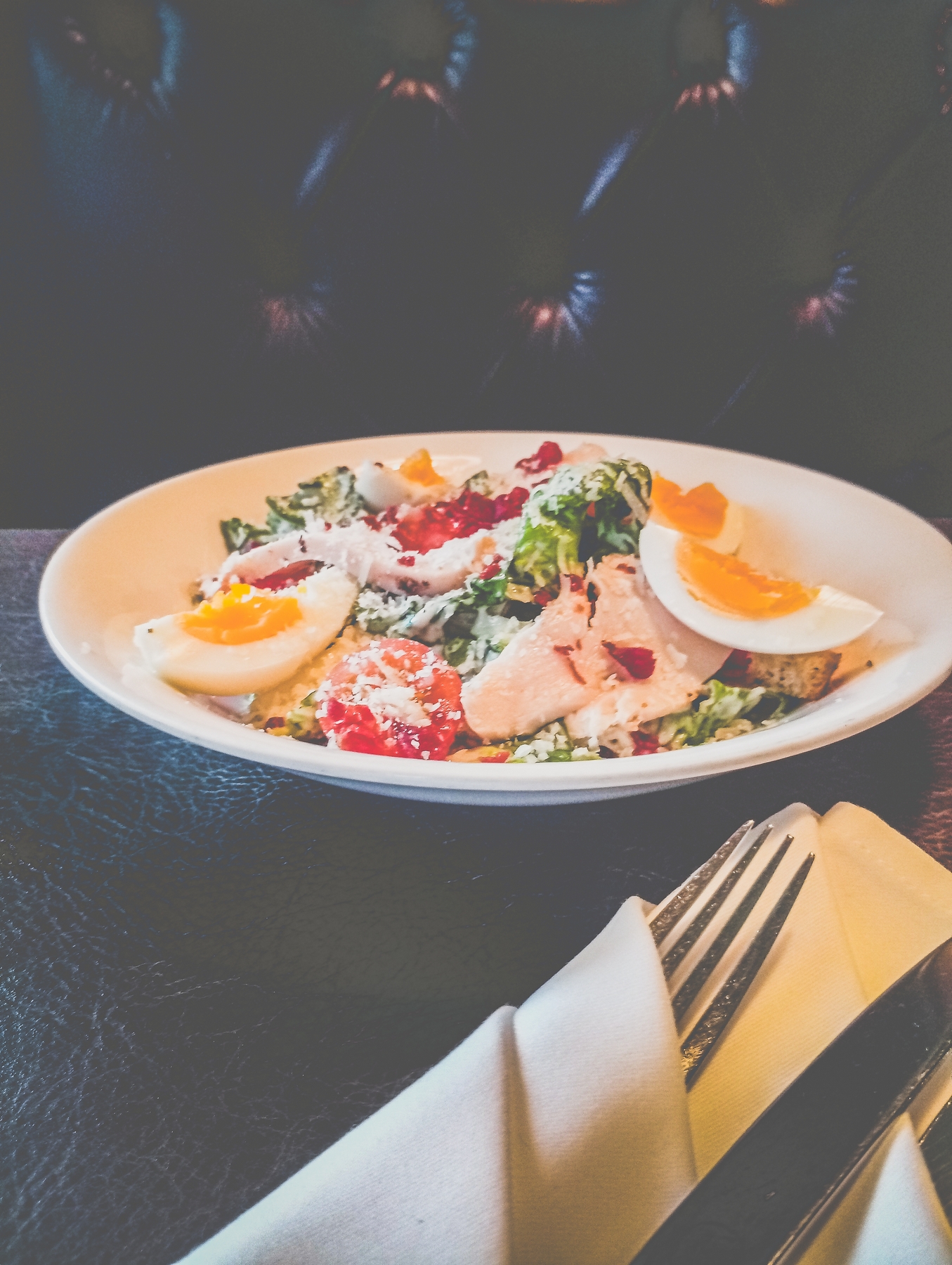 The croutons, far from the stale cubes found elsewhere, are house-baked brioche crisps—light, golden, and buttery with just enough resistance. They shatter, then melt. The Parmigiano-Reggiano is neither grated nor shaved, but elegantly ribboned, allowing one to experience its nutty umami in full flourish.