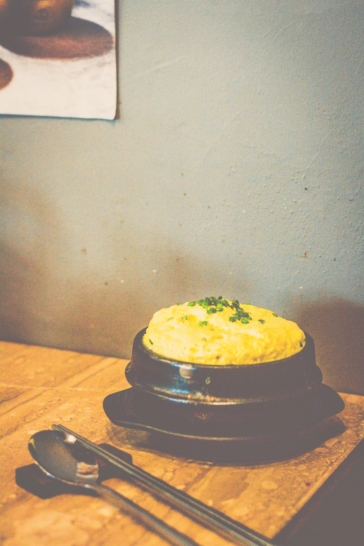 Lightly seasoned with anchovy broth and just a trace of sea salt, the flavor is understated but complete. It offers a gentle umami that deepens with each bite, inviting moments of pause between the richer grilled meats and bolder flavors. The surface is slightly puffed, the result of precise timing and steam control, and the dish remains hot to the last spoonful—comforting without ever tipping into heaviness.