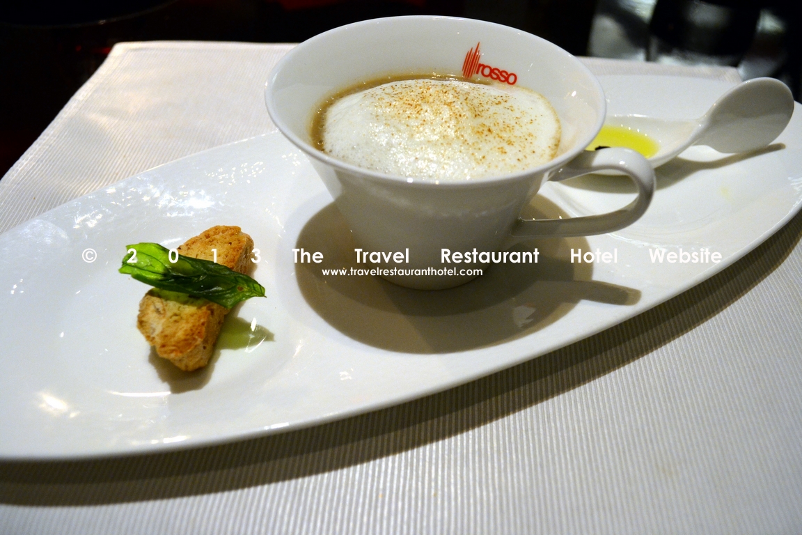 Mushroom soup + cappuccino (!) + truffle oil + served in a coffee cup (with a layer of foam on top) = AMAZING!!! INDESCRIBABLE!!! I really don’t know to describe it but it is out of this world. I don’t think I have ever this enthralled by food before. I think the chef must be quite, quite genius. AMAZING!!! INDESCRIBABLE!!!